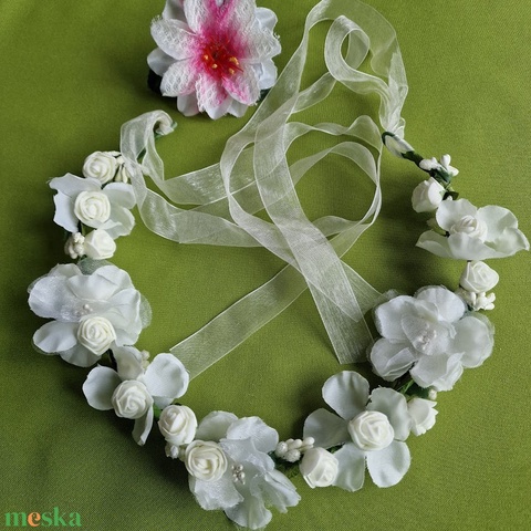 ESKÜVŐ HAD255 – Menyasszonyi hajkoszorú organza virággal és habrózsával