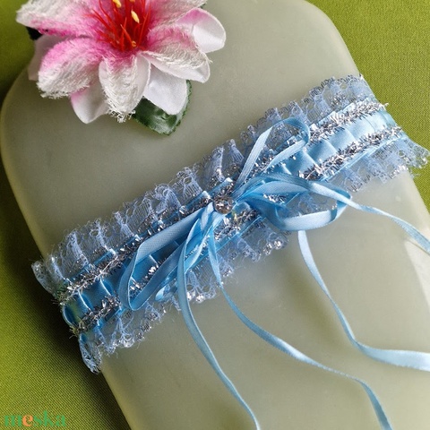 ESKÜVŐ HAK84 - 55mm-es Világoskék, kék csipke Harisnyakötő, Combcsipke, legényfogó