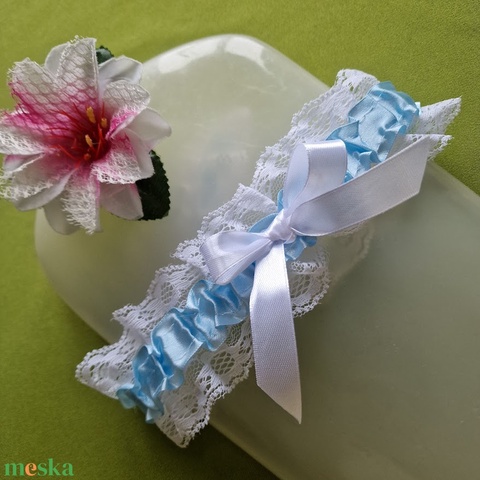 ESKÜVŐ HAK85 - 60mm-es kék, fehér masnis csipke Harisnyakötő, Combcsipke