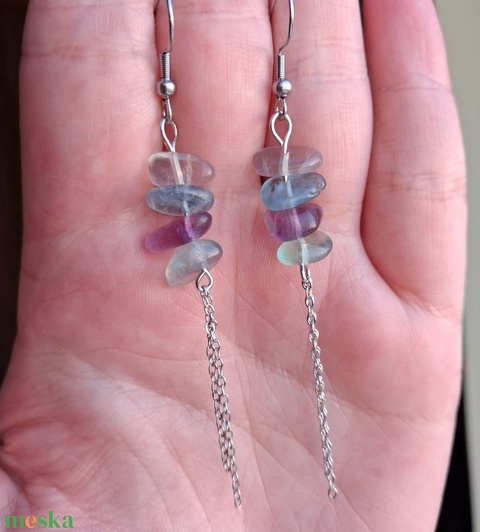 Fluorit chips/splitter láncos ásvány fülbevaló