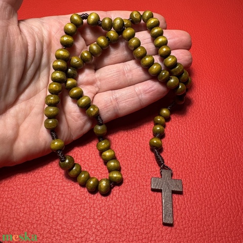 Fa rózsafüzér, Retro kereszt medálos nyaklánc – vintage vallásos ékszer az 1970–80-as évekből