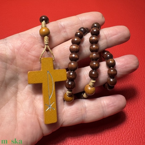 Fa rózsafüzér, Retro kereszt medálos nyaklánc – vintage vallásos ékszer az 1970–80-as évekből