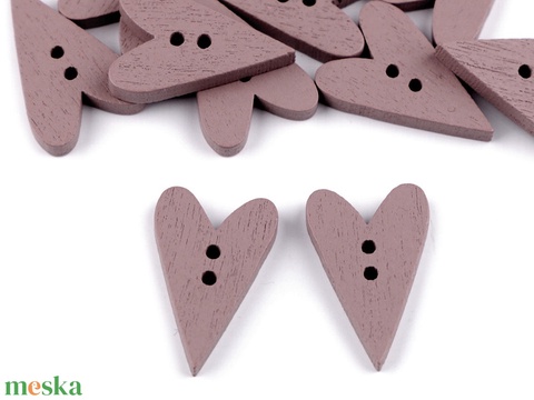RÖV54 - SZÍV alakú sötét rózsaszín színű fa gomb 18mm