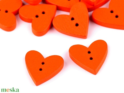 RÖV20 - SZÍV alakú narancssárga színű fa gomb 18mm