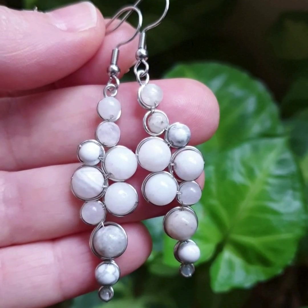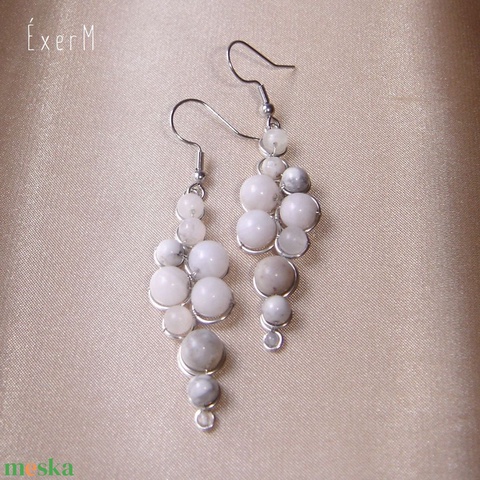 - Anyag/Összetevő ásvány, achát, amazonit, howlit, morganit, ezüstözött ékszerdrót, nemesacél fülbevaló akasztó