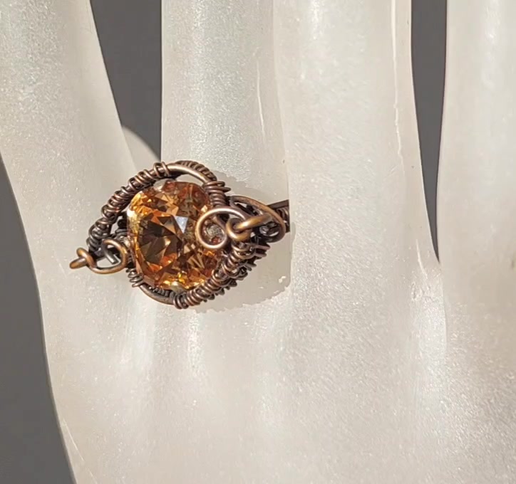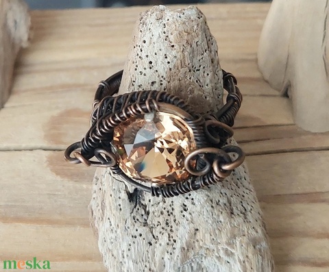 Feltűnő vörösréz gyűrű swarovski kristállyal