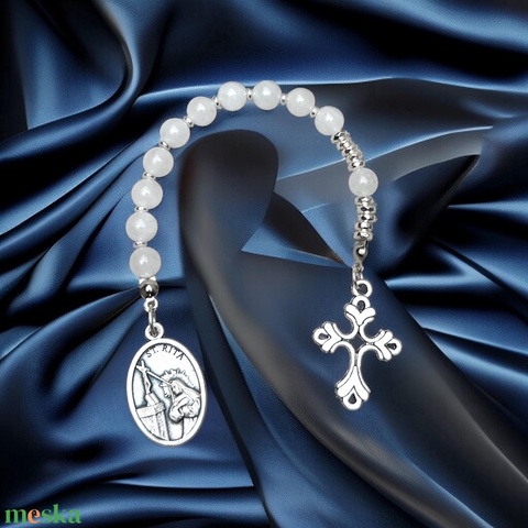 Fehér jáde zseb rózsafüzér Szent Rita csodás éremmel medállal