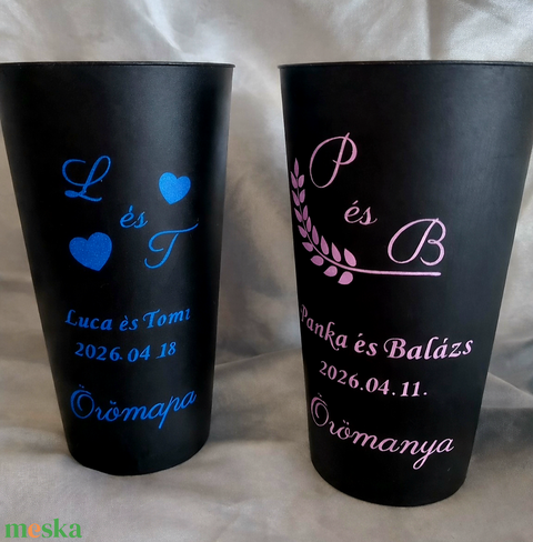 Repohár a pár nevével dátummal és a vendég nevével, köszönőajándék rendezvénypohár