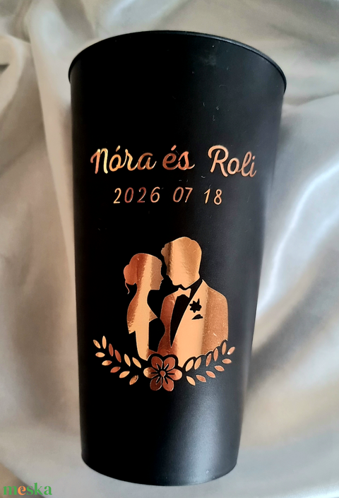 Repohár a pár nevével dátummal képpel, köszönőajándék rendezvénypohár