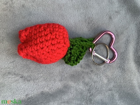 Kulcstartó. Horgolt tulipános szivecskés Kulcstartó eladó