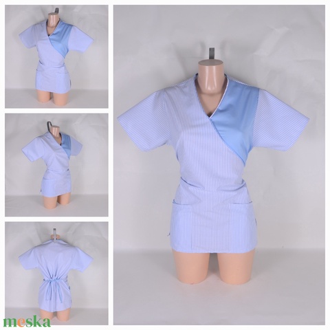 Kék csíkos díszítéssel egészségügyi/óvónői/szépségipari munkaruha