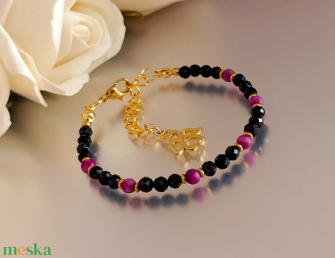 Védelem - lelki erő - átalakulás – fekete turmalin és csaroit karkötő angyal medállal
