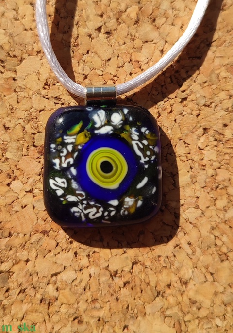 - Anyag/Összetevő bizsualkatrész, fusingüveg, millefiori gyöngy, selyem szál