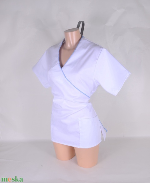Fehér kék paszpol tunika egészségügyi/óvónői/szépségipari munkaruha