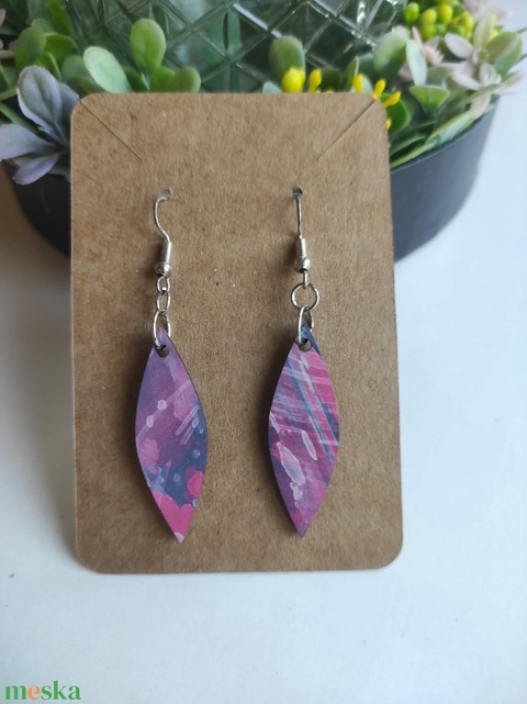 'Lila örvény' hosszúkás fa fülbevaló