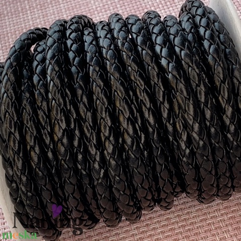 1 méter fonott, hengerelt bőrszál - 5mm - fekete