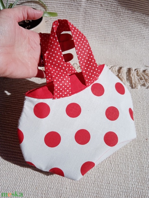 Piros nagy pöttyös randitáska, alkalmi kistáska, textil vidám táska