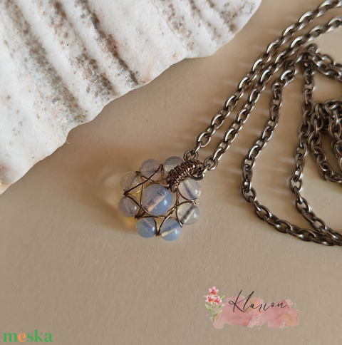Opál szirmok, ásványgyöngy medál láncon