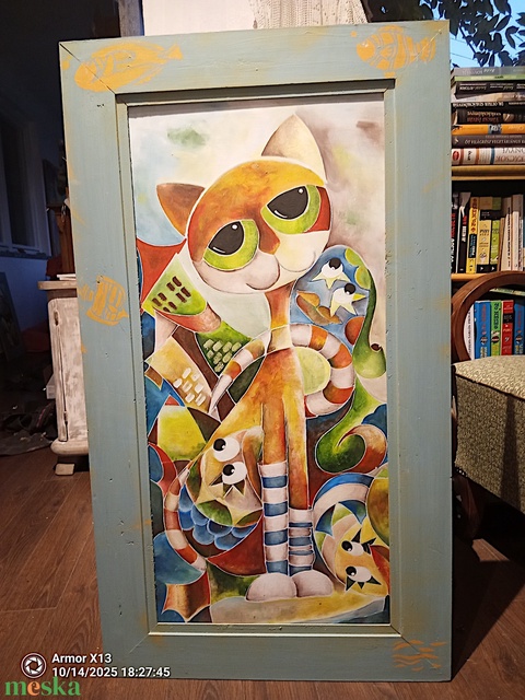 Vibók Ildi: A Halászó Macska...(akril - rétegelt lemezen)