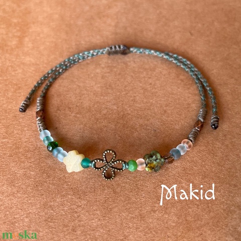 - Anyag/Összetevő viaszolt zsinór, rézmedál, ásványgyöngy, üveggyöngy, rézgyöngy