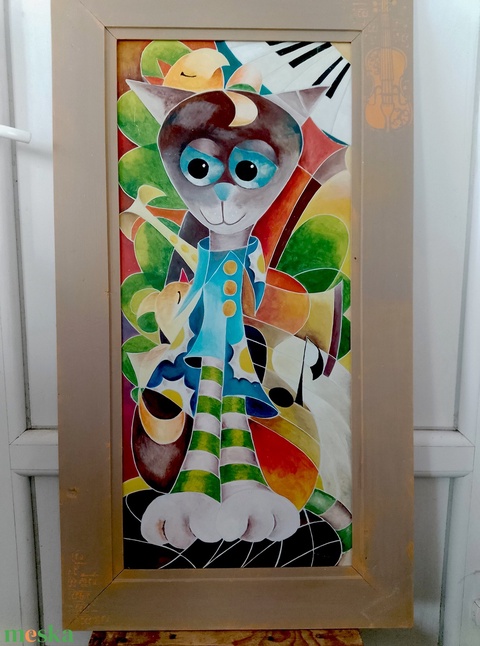 Vibók Ildi: A Muzsikus Macska...(akril - rétegelt lemezen)