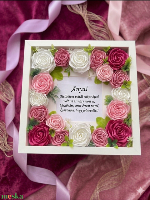 Szatén rózsával díszített kép édesanyánakk