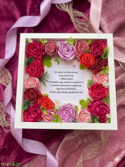 Szatén rózsával díszített kép