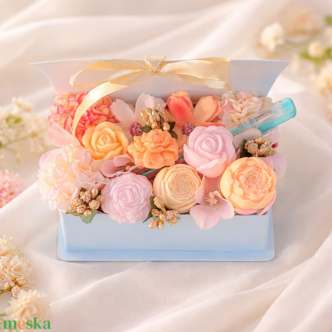 - Anyag/Összetevő szappan, doboz, selyemvirág