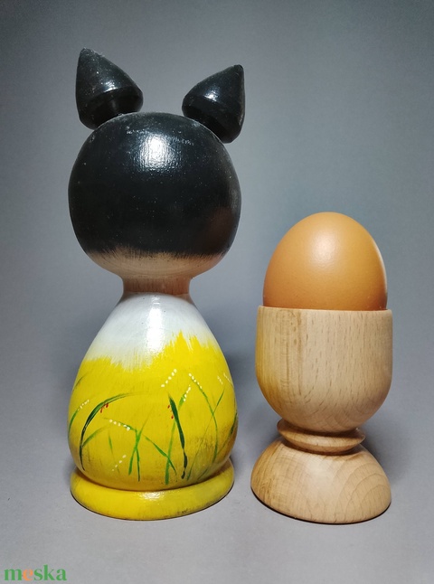Kézzel készített egyedi Kokeshi cica - kóbormacska mintával