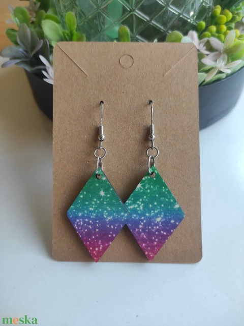 'Színgalaxis' rombusz fa fülbevaló