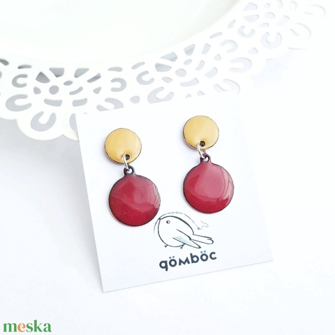 Tűzzománc sárga-piros lógós fülbevaló
