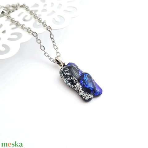 Kék és ezüst színjátszó Dichroic üveg nyaklánc