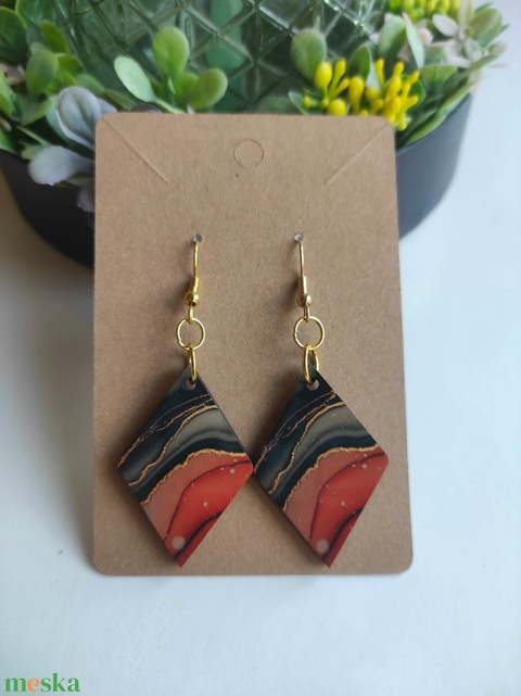 'Smaragd Napfény' rombusz fa fülbevaló
