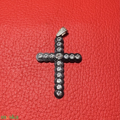 Retro fekete kereszt nyakláncra – vintage vallásos ékszer az 1970–80-as évekből