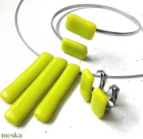 NEMESACÉL! KLIPSZES üde zöld trendi ékszerszett.