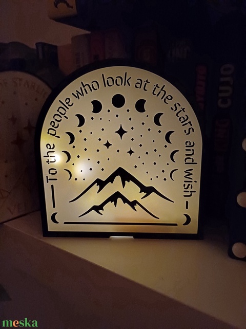 ACOTAR világítós könyvtámasz. A könyvtámasz belsejébe helyezhető fényfüzérnek köszönhetően, nemcsak nappal, de este is tündökölhet a könyves polcod.