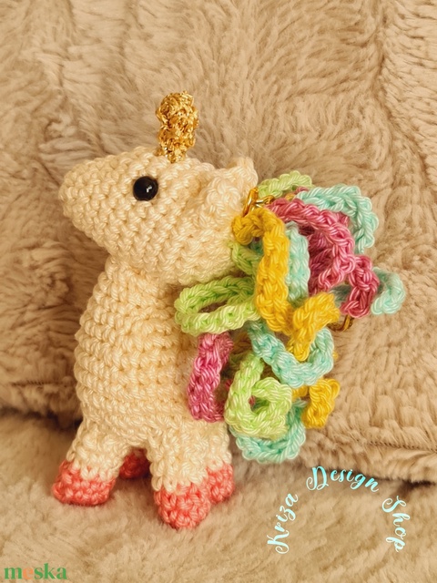 Kézműves horgolt kabalafigurás kulcstartó - Mini unikornis (Dália)