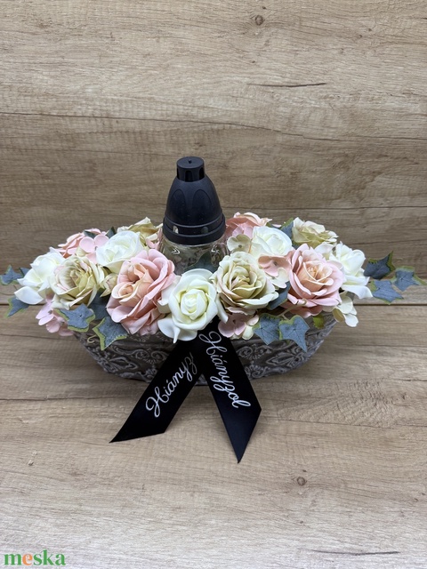 Rózsaszín rózsás sírdísz