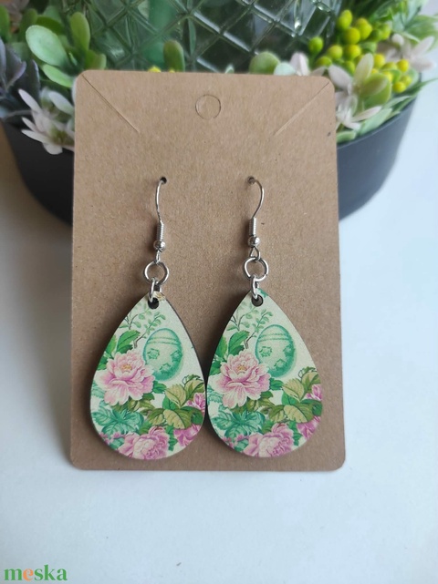 „Húsvéti Rózsakert” fa csepp fülbevaló