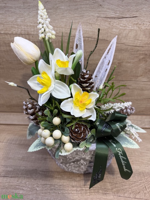 - Anyag/Összetevő selyemvirág, kőkaspó