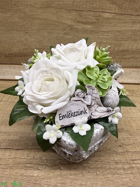 - Anyag/Összetevő kerámiadísz, kőkaspó, termések, selyemvirág