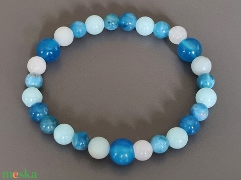 "Tengerkék" achát karkötő, ásvány, gyöngy, ékszer, Magyarország, ajándék, nőnek
