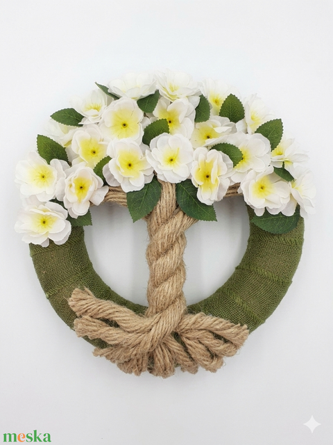 Életfa koszorú, ajtódísz-fehér