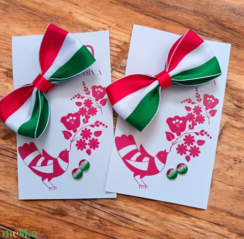 Magyaros pöttyfülbevaló, masni hajcsattal