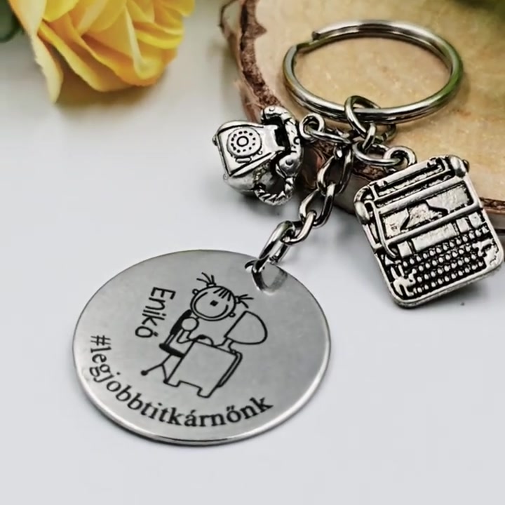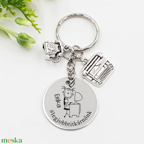 Titkárnőnek ajándék - titkárnő kulcstartó grafikával, egyedi névvel, felirattal