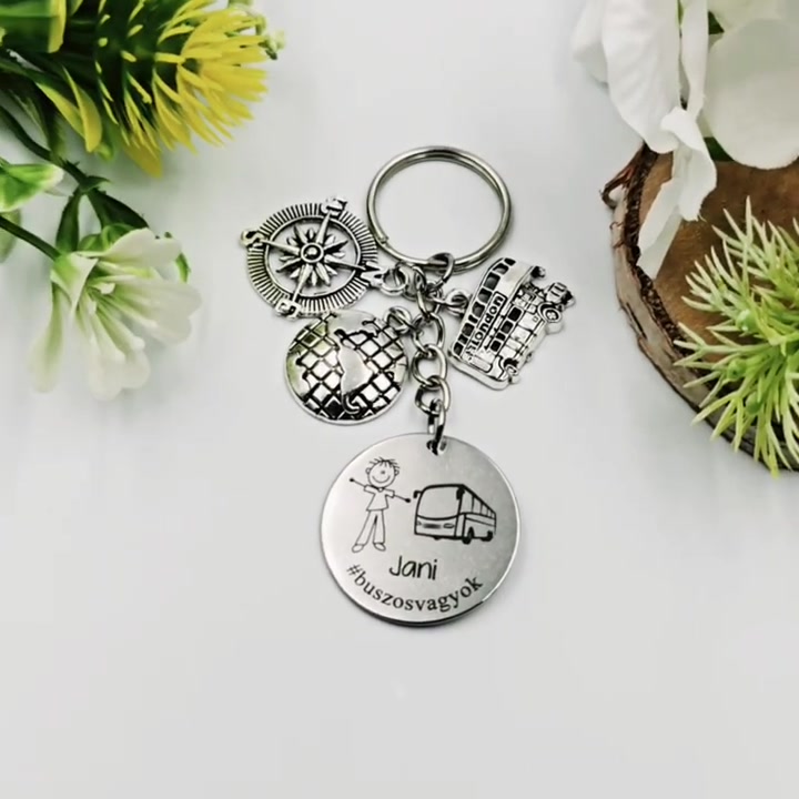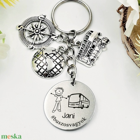 Buszsofőrnek ajándék - buszsofőr kulcstartó grafikával, egyedi névvel, felirattal
