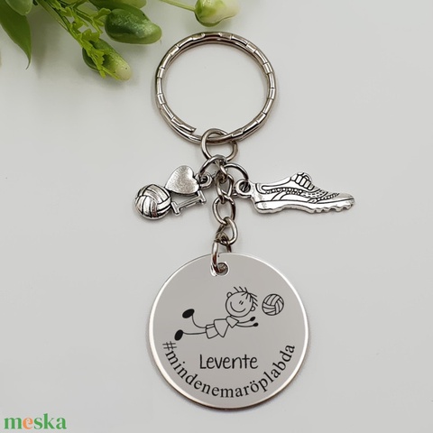 Röplabdásnak ajándék - férfi röplabdás kulcstartó grafikával, egyedi névvel, felirattal