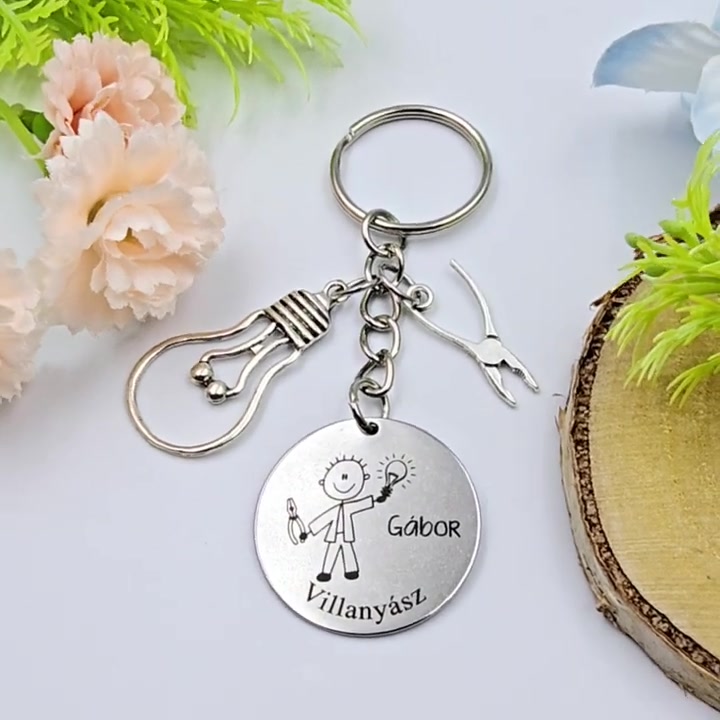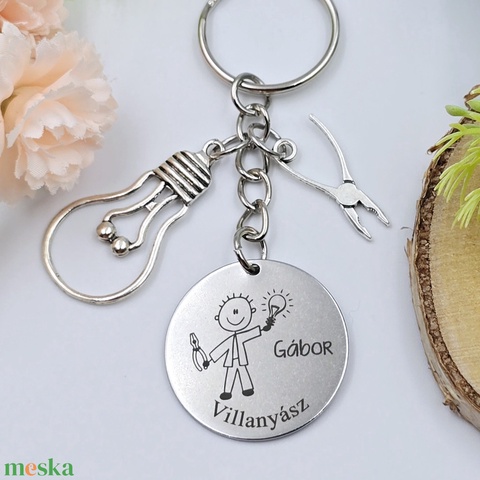 Villanyszerelőnek ajándék - villanyszerelő kulcstartó grafikával, egyedi névvel, felirattal