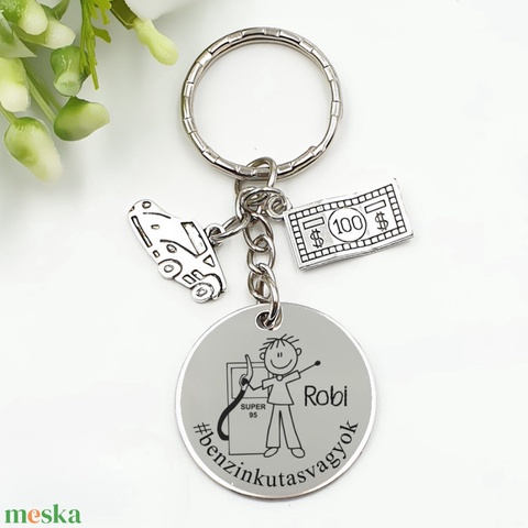 Benzinkutasnak ajándék - benzinkutas kulcstartó grafikával, egyedi névvel, felirattal