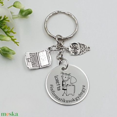 Informatikus nőnek ajándék - informatikus kulcstartó grafikával, egyedi névvel, felirattal